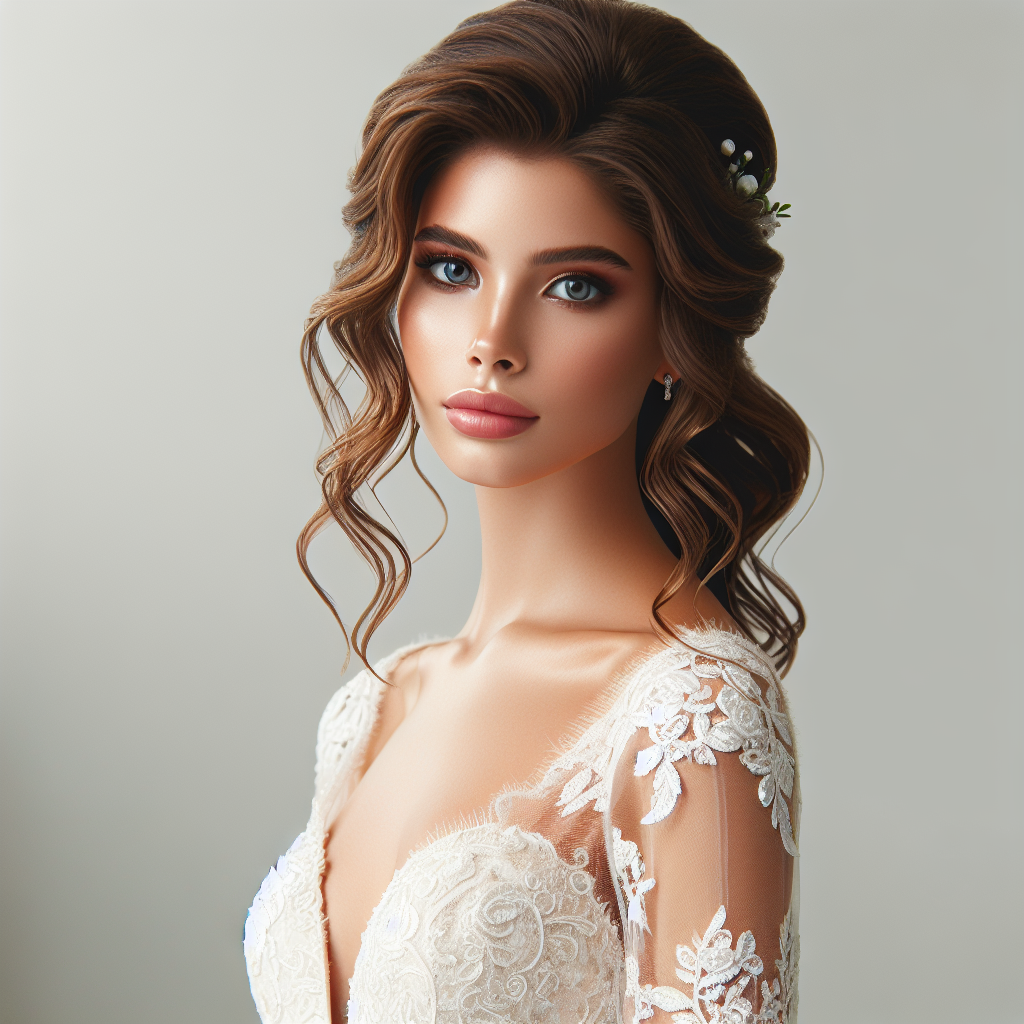 For brides who prefer a polished look, a sleek half up half down style is effortless and eye-catching. Straighten your hair and gather the top section, securing it back with an elegant clip or bow. This hairstyle is the epitome of modern elegance and is particularly striking with minimalist bridal gowns.